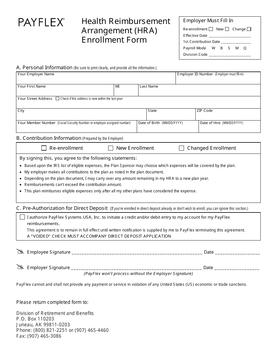 Alaska Health Reimbursement Arrangement Hra Enrollment Form Payflex Download Fillable Pdf Templateroller
